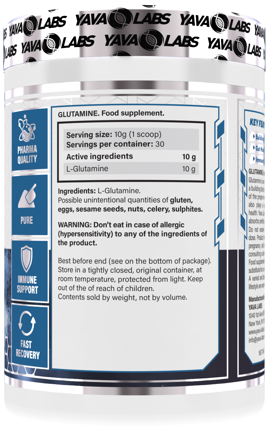 YAVA LABS L-GLUTAMINE POWDER ist eine Aminosäure, die der Körper nur in kleinen Mengen herstellen kann, weshalb wir sie durch Nahrung aufnehmen müssen. Unabhängig davon, ob du Gewichte hebst oder Cardio machst, ist unser super praktisches YAVA LABS L-GLUTAMINE POWDER hervorragend geeignet, um das benötigte Glutamin zu bekommen.