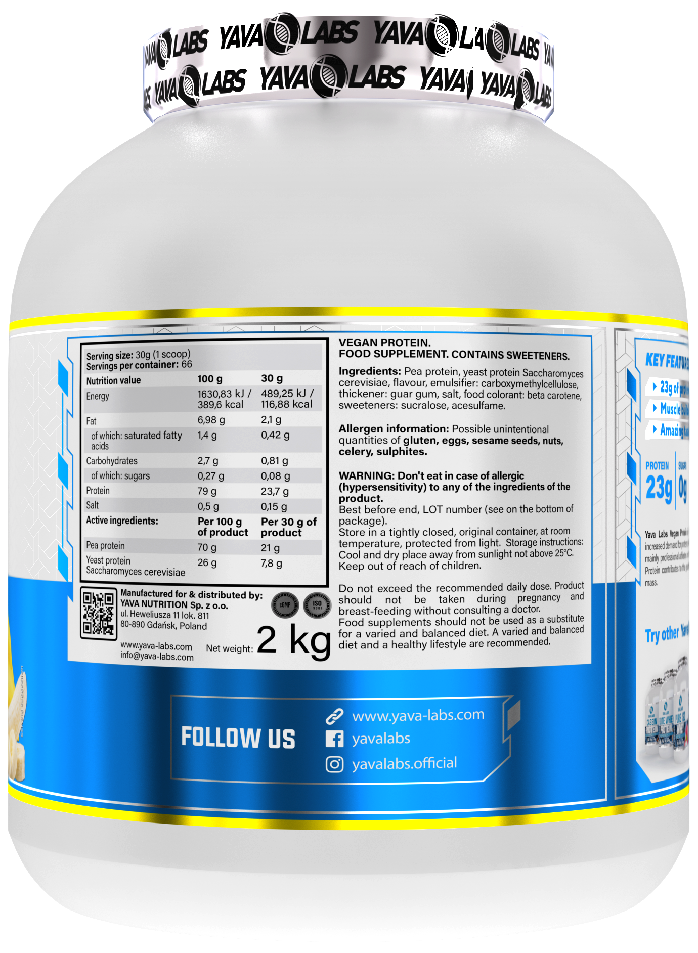 Bei Yava Labs glauben wir an die Kraft der Natur, deshalb werden unsere veganen Proteine ausschließlich aus hochwertigen pflanzlichen Zutaten hergestellt. Wir verzichten auf künstliche Zusätze, Geschmacksverstärker oder Konservierungsstoffe, sodass Sie sicher sein können, ein reines und natürliches Produkt zu konsumieren. Unsere veganen Proteine sind nicht nur eine hervorragende Proteinquelle, sondern eignen sich auch als vielseitige Basis für verschiedene Gerichte – von Backwaren über Proteinshakes bis hin zu Suppen.