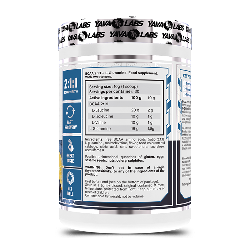 Genehmigt vom zweifachen Mr. Olympia Classic-Champion, Breon Ansley, Yava Labs Elite BCAA + L-Glutamin ist ein Nahrungsergänzungsmittel, das die Proteinsynthese unterstützt und eine schnellere und bessere Erholung ermöglicht. Jede Portion bietet ein hervorragendes Verhältnis der Aminosäuren Leucin, Isoleucin und Valin – allgemein bekannt als BCAA (verzweigtkettige Aminosäuren). Diese BCAAs unterstützen das Muskelwachstum, verbessern die Trainingsleistung und fördern die Erholung. Zusätzliches L-Glutamin kann auch beim Abnehmen und der Verringerung der Ermüdung nach dem Training helfen. Erhältlich in vielen leckeren Geschmacksrichtungen, um Ihre Trainingsroutine zu ergänzen.